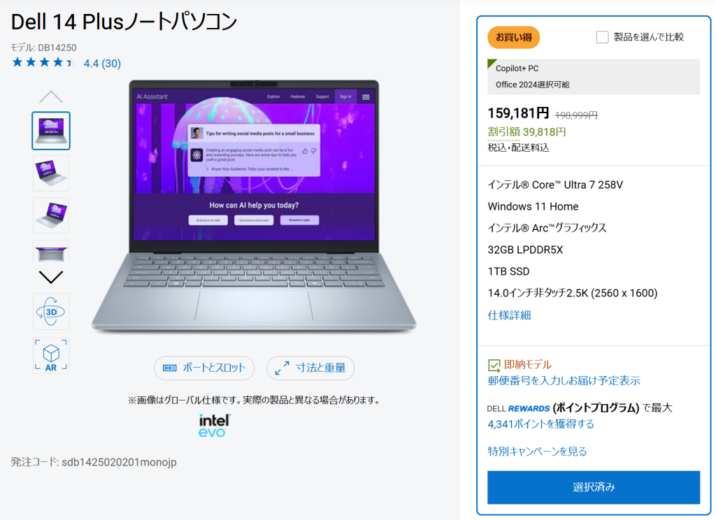 エントリー~ミドルレンジ機種のDELL Inpironのコスパ、納期の早さは驚くべきものがあります。