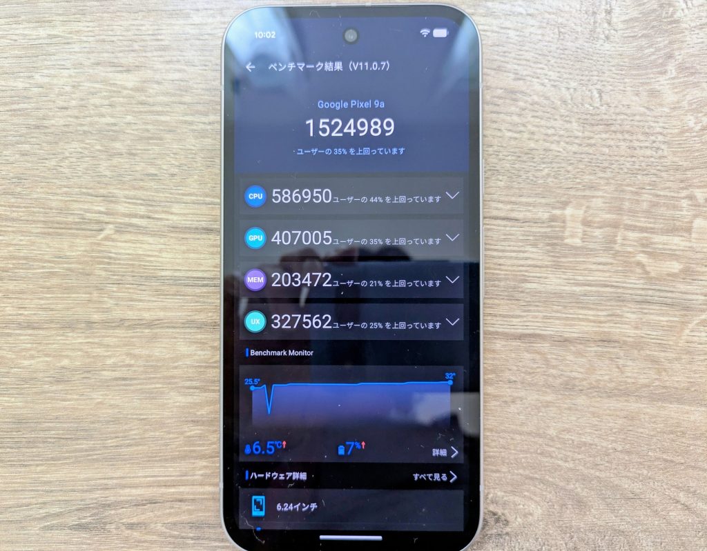 9aのスコアは準ハイエンドでSnapdragon 8 Gen1、Gen2あたりと同等レベルとなり、普段使いには性能は十分です。