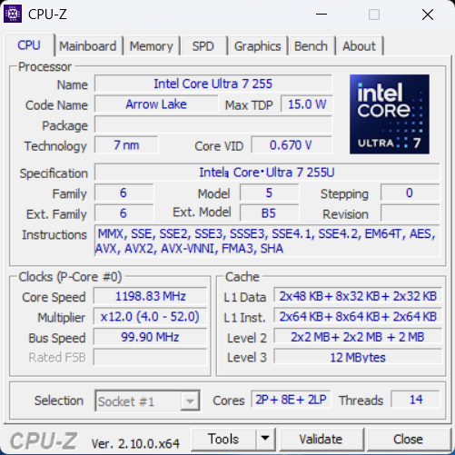 | CPU | インテル® Core™ Ultra 5 プロセッサー 225U, Core™ Ultra 7 プロセッサー 255U, Core™ Ultra 5 プロセッサー 225H, Core™ Ultra 7 プロセッサー 255H |