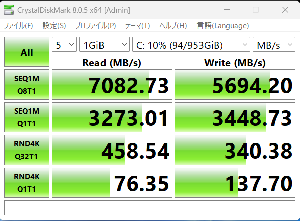 | AMD Ryzen 7 7735HS | 1分11秒 |