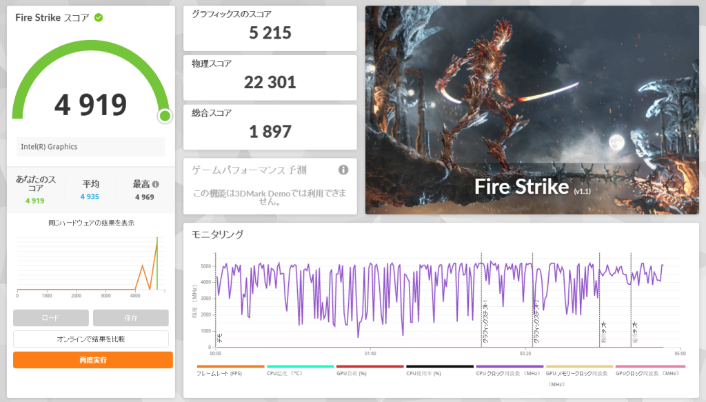 | CPUグラフィック性能(3DMark FireStrike) | B- (5125) |