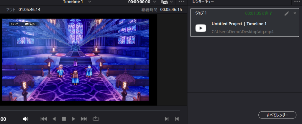 動画編集ソフトDavinci Resolveで、5分45秒のフルHDのYouTube動画書き出し時間にかかった時間を計測しました。