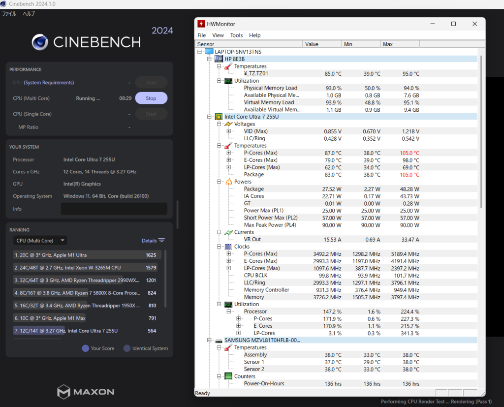 | Intel Core Ultra 7 255U | 1分35秒 |