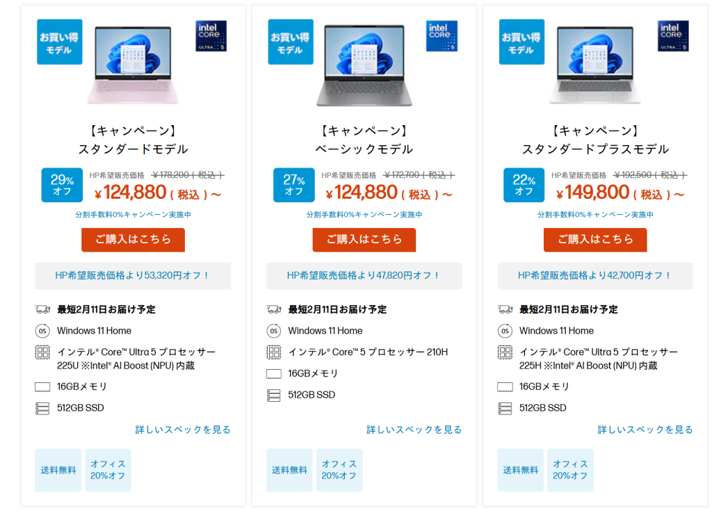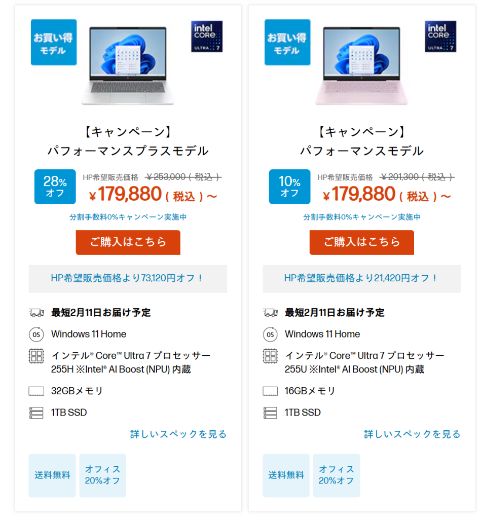 下のリンクより購入していただくと、税込13.2万円以上のノートパソコンが7%オフで購入できます。【広告】【提供:株式会社日本HP】