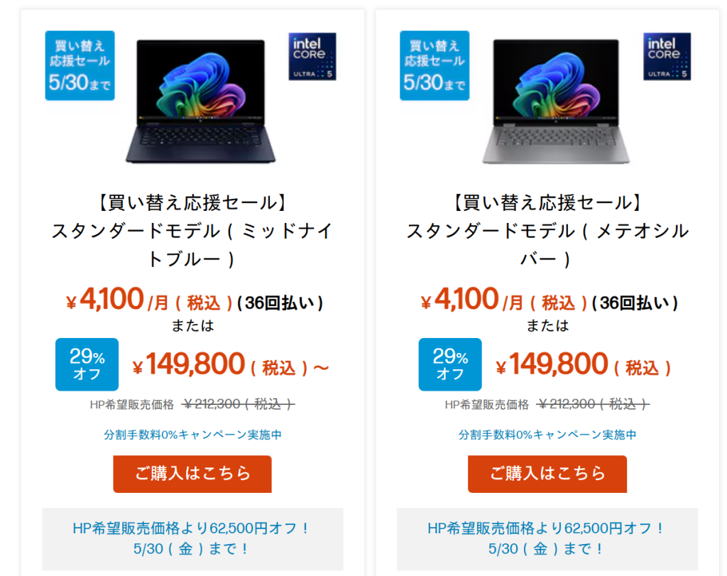 下のリンクより購入していただくと、税込13.2万円以上のノートパソコンが7%オフで購入できます。【広告】【提供:株式会社日本HP】