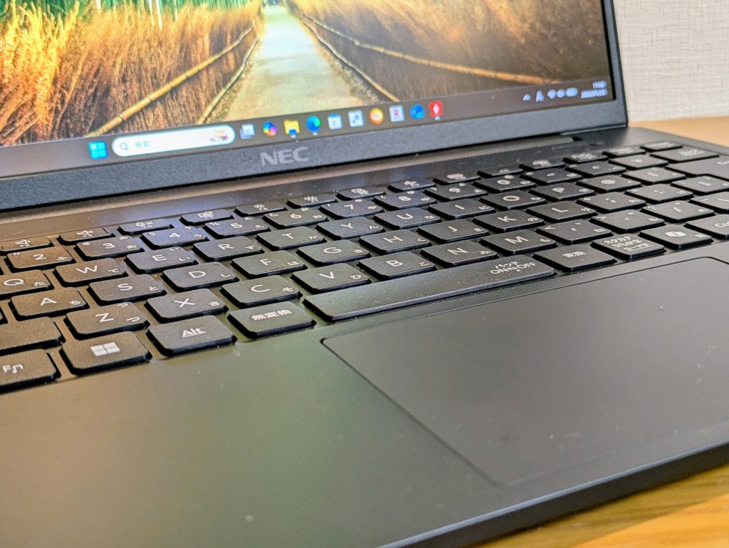 キーボードの配置と、キーの打ちやすさが優れており、このあたりはさすが日本メーカーのートパソコンという感覚です。文字を打つ機会が多い場合にもおすすめできます。
