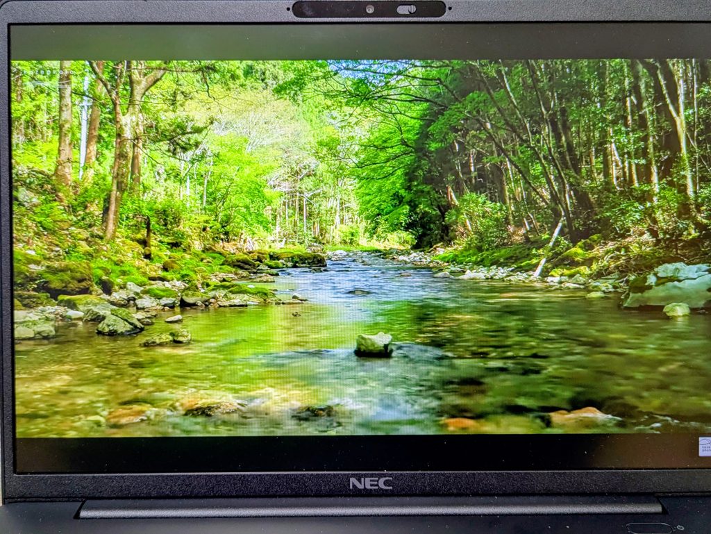 上の写真は一般的な色域のIPS液晶との比較で、同じ画像ではなく恐縮ですが(汗)色鮮やかできれいなディスプレイです。