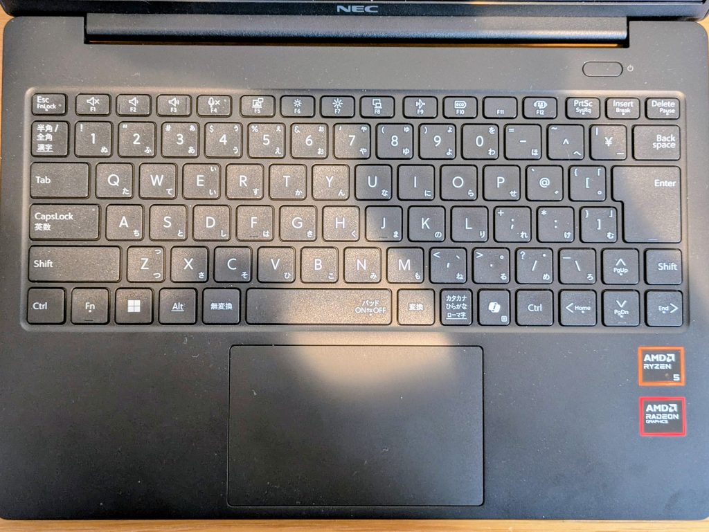 キーボードは配置がきれいで、さすが日本メーカーの品質といったところです。