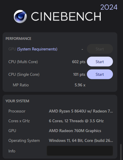 | AMD Ryzen 5 8640U | 1分32秒 |