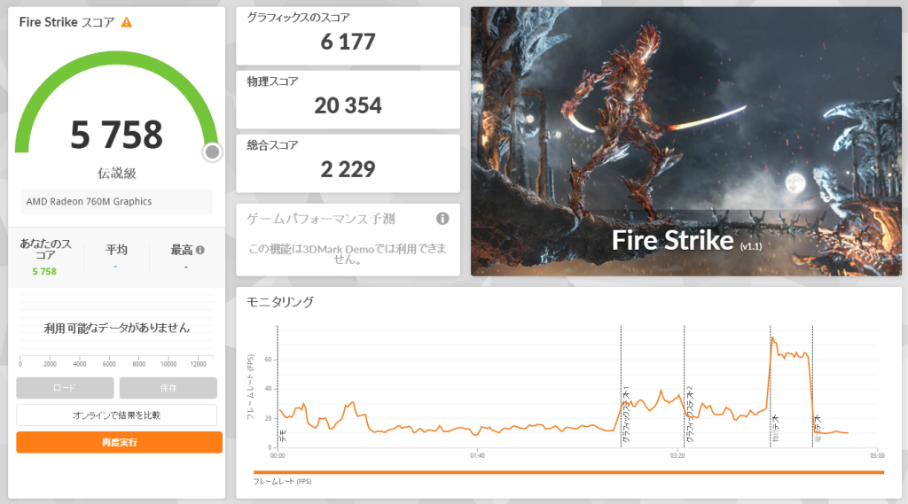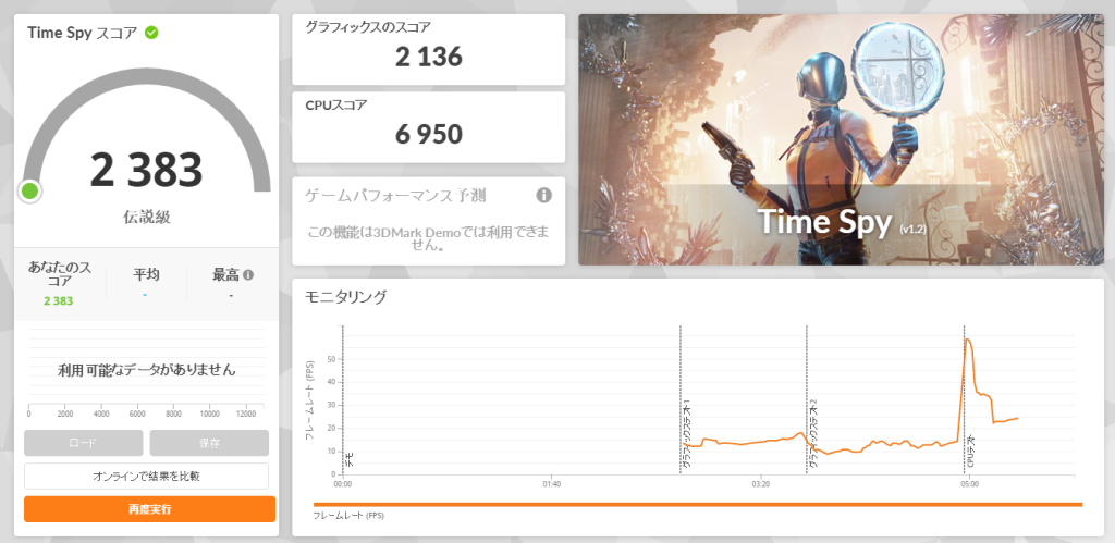 | CPUグラフィック性能(3DMark FireStrike) | B (7359) |