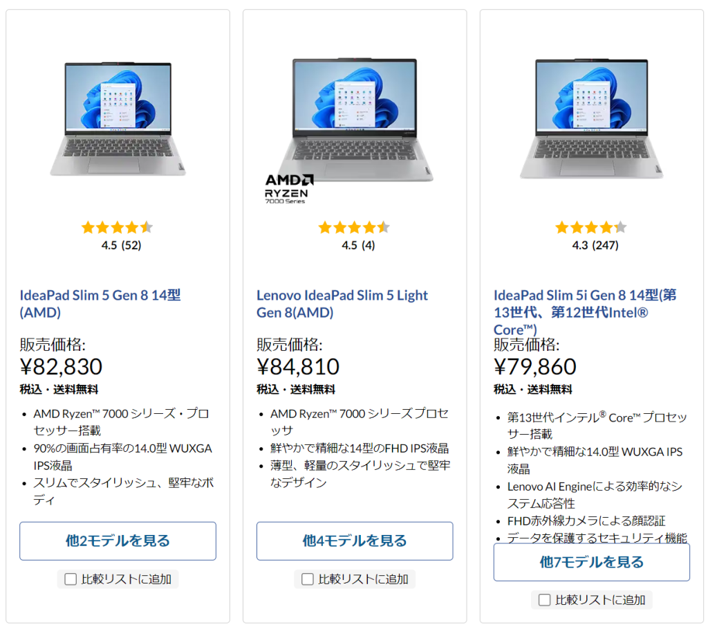 レノボはラインナップが多く、満遍なくコスパが良いので、おすすめ機種をチェックしていればお買い得な機種が購入できる可能性が高いです。