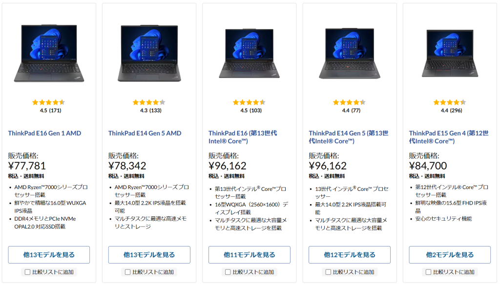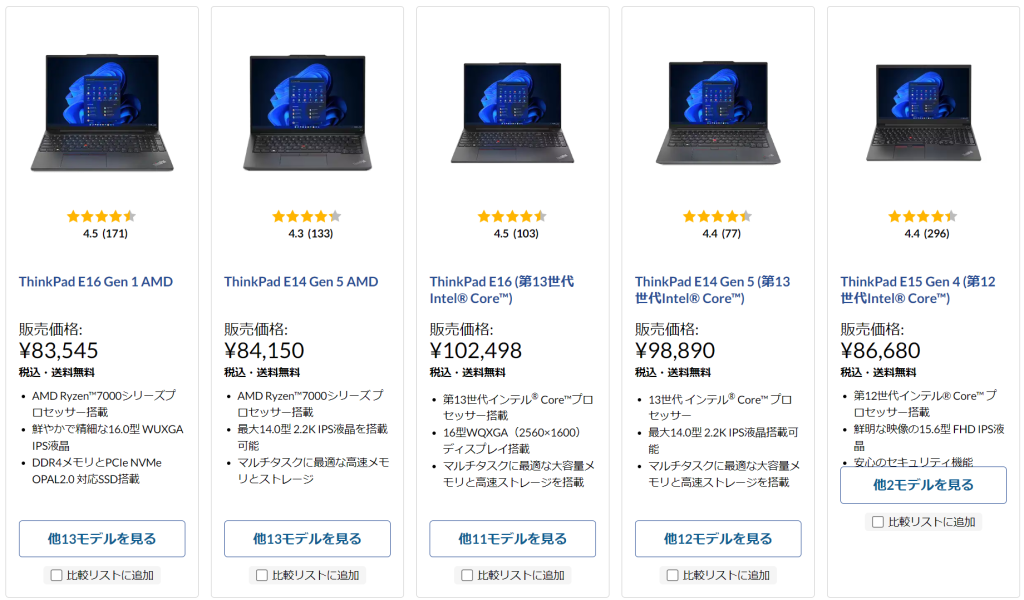 ThinkPad シリーズは、明確に全機種安くなっています。